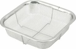 MINEX Stainless Steel Udon Tebo Noodle Strainer Flat Base With Plain Wooden Handle