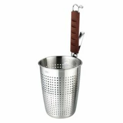 YUKIWA Stainless Steel Perforated Deep Tebo Noodle Strainer With Silicone Handle